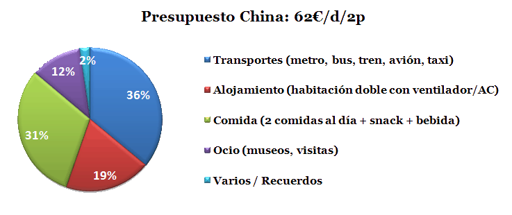 Transportes: Buena red, casi siempre se puede elegir entre el autobús, el tren o el avión en función del presupuesto y del tiempo disponible. Para los viajes de menos de 20h, hemos privilegiado el viajar en tren en vez del autobús, más cómodo; o coger el avión. Las estaciones de autobús reagrupan diferente compañías y suelen estar en la ciudad. Los autobuses suelen tener literas, esto puede resulta molesto en trayectos largos, además no se paran demasiado (y no suelen tener aseos en el interior). Hace falta el pasaporte para poder comprar los billetes del tren y más vale comprarlos antes porque se agotan rápidamente. Existen vendedores de billetes on-line pero, se llevan buenas comisiones, más vale comprarlos en la estación. Para mas información sobre los trenes en China, podéis consultar la página Seat61 (http://www.seat61.com/China.htm)